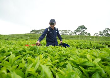 Caption: Direktur Utama PTPN IV PalmCo Jatmiko Santosa saat meninjau kebun teh Regional II di Sidamanik, Sumatera Utara. PalmCo berhasil...