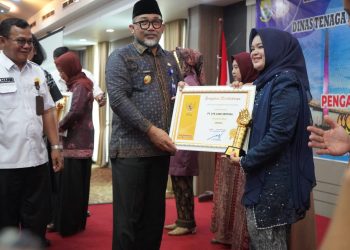 VisualJambi, Jambi.- Penjabat Sementara (Pjs) Gubernur Jambi Dr. H. Sudirman, S.H., M.H, menyerahkan Penganugerahan Tropi dan Piagam Penghargaan Produktivitas Siddhakarya...