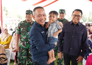 Keterangan foto: Direktur Utama PTPN IV PalmCo Jatmiko Santosa dan Direktur Hubungan Kelembagaan Irwan Perangin-angin saat gelaran Pengentasan Stunting di...