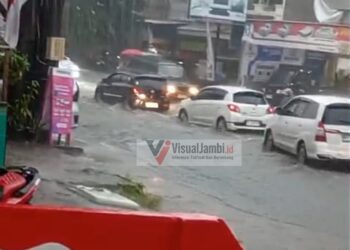 Visual Jambi, Kota Jambi. – Hujan deras kembali menggenangi Jalan Bunga Raya III, Simpang Pulai, Kota Jambi. Genangan air yang...
