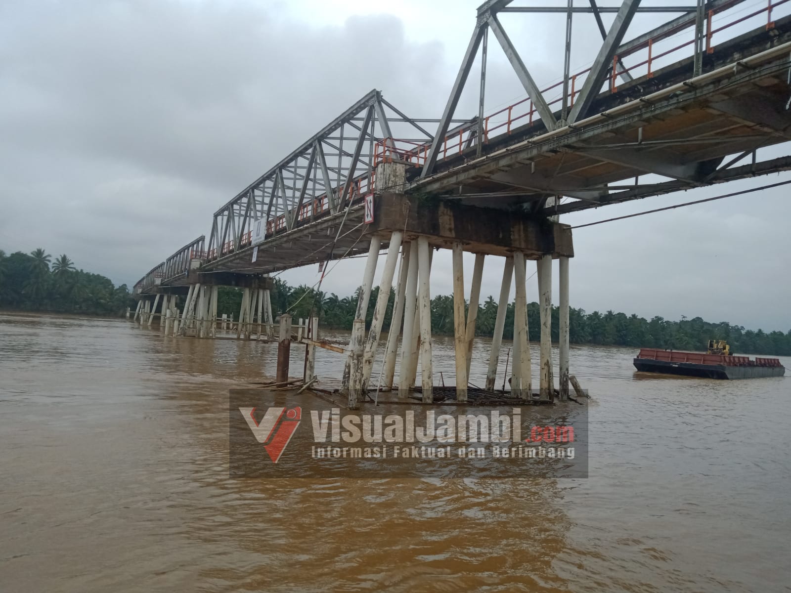 VisualJambi, Batanghari (tembesi). – Siapa yang harus bertanggung jawab, yang mana melihat kondisi jembatan muara tembesi sebagai akses utama untuk seluruh semua kendaraan pada Jalan Nasional ini akan menjadi Bom waktu bakal Ambruk.