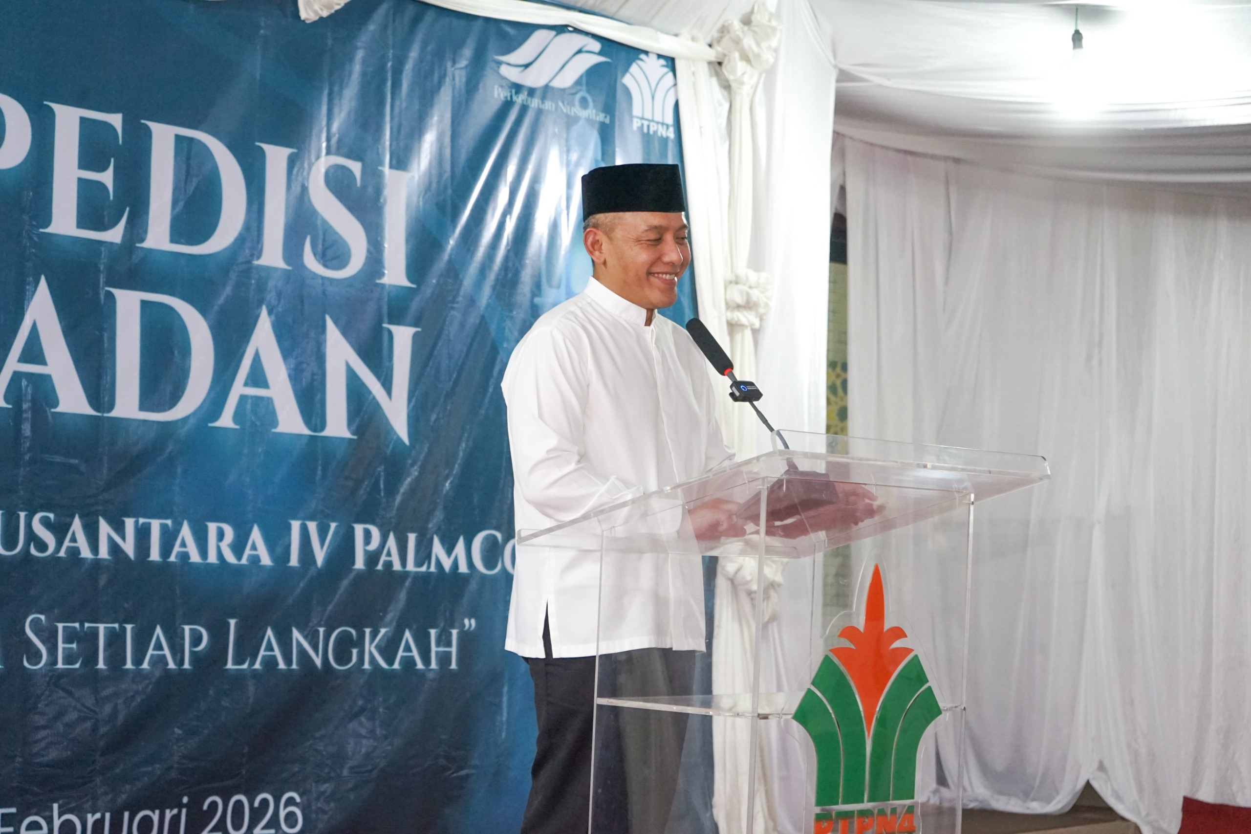 VisualJambi, Jambi – Berbagi berkah bulan suci Ramadhan 1447 Hijriah, PT Perkebunan Nusantara (PTPN) IV Regional IV Jambi menggelar Ekspedisi Ramadhan dengan cara menyantuni 50 orang anak yatim-piatu dan 50 orang kaum dhuafa. Santunan langsung diberikan Direktur Utama PTPN IV Palmco, Jatmiko Santosa di Masjid Munthada Sholihin komplek Region Office Regional IV Jambi.