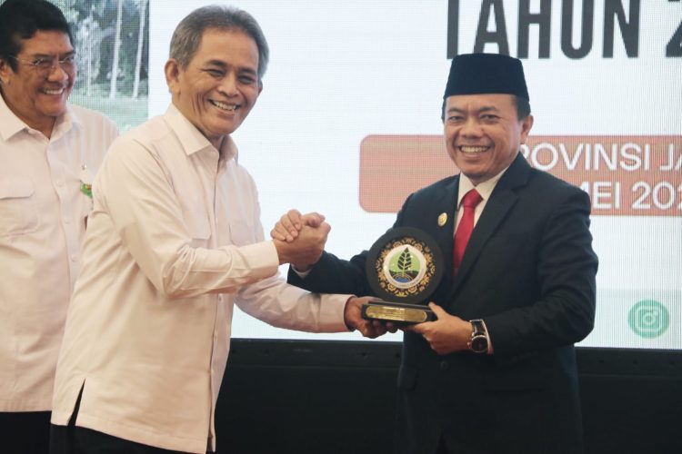 VisualJambi, Jambi. – Penghargaan untuk komitmen dan kepemimpinan luar biasa dalam menjadikan Provinsi Jambi sebagai pusat referensi pelaksanaan restorasi gambut nasional diterima oleh Gubernur Jambi, Al Haris dari Badan Restorasi Gambut Mangrove (BRGM). Penyerahan penghargaan ini dilakukan langsung oleh Kepala BRGM, Ir. Hartono, M.Sc., kepada Gubernur Al Haris. Acara tersebut juga menjadi pembukaan Rapat Koordinasi Teknis Restorasi Gambut Tahun 2024, yang diadakan di BW Luxury Hotel pada Selasa (07/05/2024).