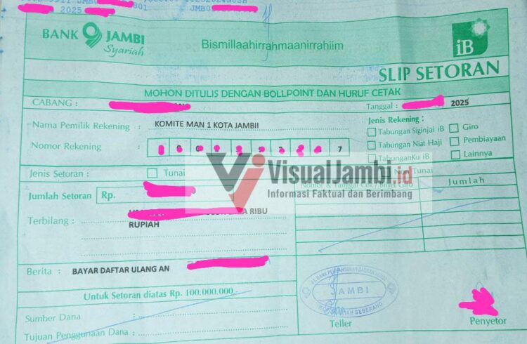 Visual Jambi, Kota Jambi. – Praktik pungutan komite sekolah kembali mencuat, kali ini melibatkan Madrasah Aliyah Negeri (MAN) 1 Kota Jambi Seberang.