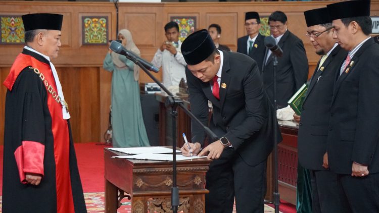 VisualJambi, Kota Jambi. – M Hafiz Fattah Resmi dilantik menjadi Ketua DPRD Provinsi Jambi periode 2024-2029. Rapat paripurna pengambilan sumpah/janji dipimpin langsung oleh Wakil Sementara DPRD Provinsi Jambi Mazlan, Sabtu (19/10). Pengucapan sumpah/janji dipandu oleh Ketua Pengadilan Tinggi Jambi.