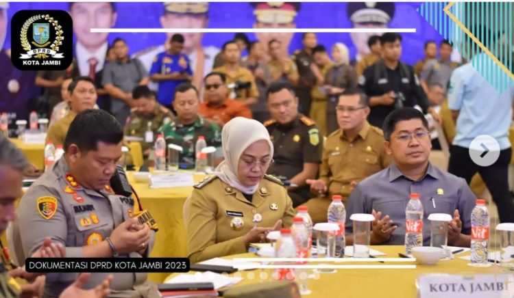 Senin 12 Februari 2024, Ketua DPRD Kota Jambi Putra Absor Hasibuan,SH Bersama PJ Walikota Jambi ibu Sri Purwaningsih SH,M.A.P Menghadiri Rapat Kordinasi Meningkat Peran aktif Forkompinda Dalam Mendeteksi Secara cepat potensi gangguan Keamanan dan Ketertiban Jelang Pemilu Umum dan Pemilihan Kepala Daerah serentak, serta isu-isu aktual, Rapat dihadiri Forkompinda Provinsi serta Forkompinda Se-Provinsi Jambi.