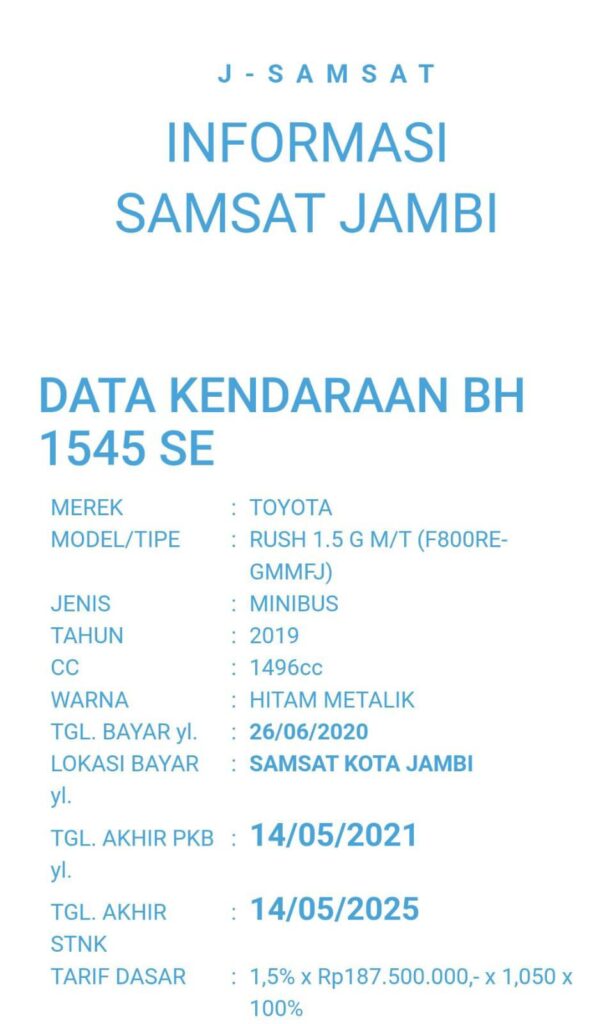 Namun, ketika dilakukan pengecekan melalui kanal resmi Samsat online, data kendaraan yang muncul tidak sesuai dengan realita.