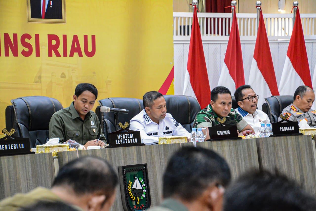 Rapat yang berlangsung dengan tertib dan lancar ini turut dihadiri oleh Gubernur Riau, Kepala Kejaksaan Tinggi Riau, Kapolda Riau, serta Danrem 031/Wira Bima, Danlanud Roesmin Nurjadin, Danlanal Dumai dan Direktur Pengendalian Kebakaran Hutan Kemenhut RI.