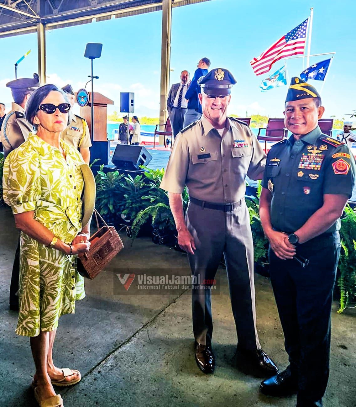 VisualJambi, Hawaii, Amerika Serikat. – Panglima TNI Jenderal TNI Agus Subiyanto menghadiri upacara serah terima jabatan Komandan US INDOPACOM dari Laksamana John Aquilino kepada Laksamana Samuel J. Paparo Jr dengan inspektur upacara Menteri Pertahanan AS Lloyd J Austin III di Pangkalan US Indopacom, Joint Pearl Harbour-Hickam, Hawaii, AS, Jumat (3/05/2024).