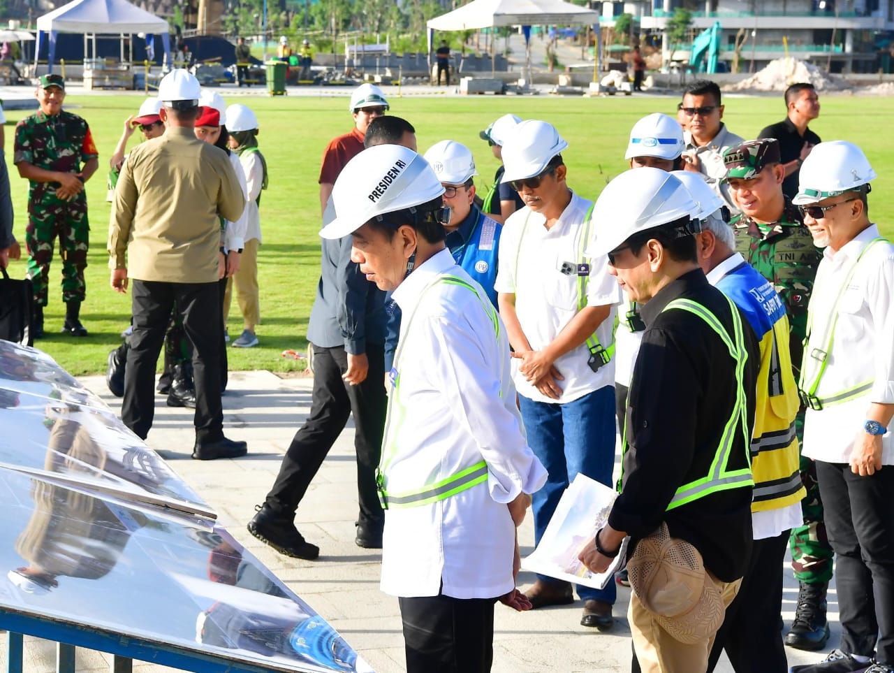 VisualJambi, Kalimantan Timur. – Panglima TNI Jenderal TNI Agus Subiyanto mendampingi Presiden RI Joko Widodo Groundbreaking sejumlah gedung di Ibu Kota Nusantara (IKN), diantaranya Gedung Bank Tabungan Negara (BTN), Nusantara Sustainability Hub, Bina Bangsa School, Arena Gourmet, PLN Hub, dan Launching Kantor Berita Antara di Hunian Pekerja Konstruksi (HPK), Jl. Mulawarman No. 99 Balikpapan, Kalimantan Timur, Rabu (5/6/2024).