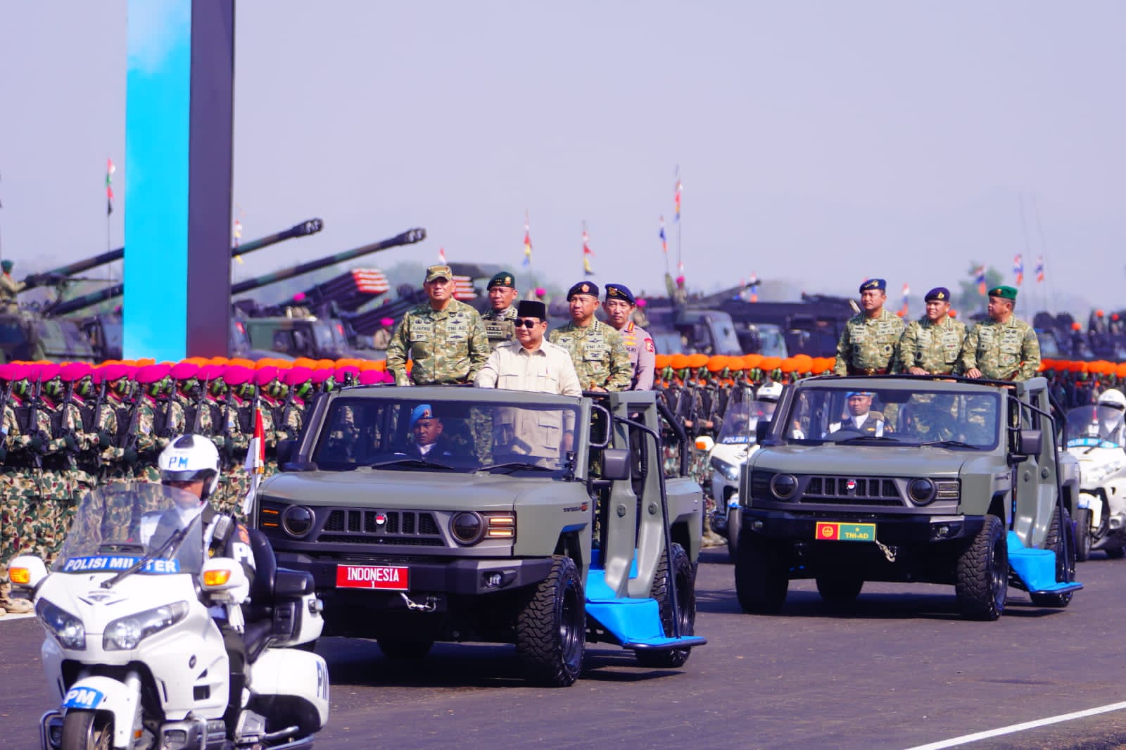 Lebih lanjut, Presiden menekankan pentingnya mempertahankan wilayah, kedaulatan, dan kekayaan bangsa di tengah situasi dunia yang penuh ketidakpastian, di mana perang masih terjadi di berbagai belahan dunia. “Indonesia tidak mau memihak blok manapun. Tapi karena itu, tidak ada pilihan lain. Indonesia harus punya pertahanan yang sangat kuat,” ujarnya.