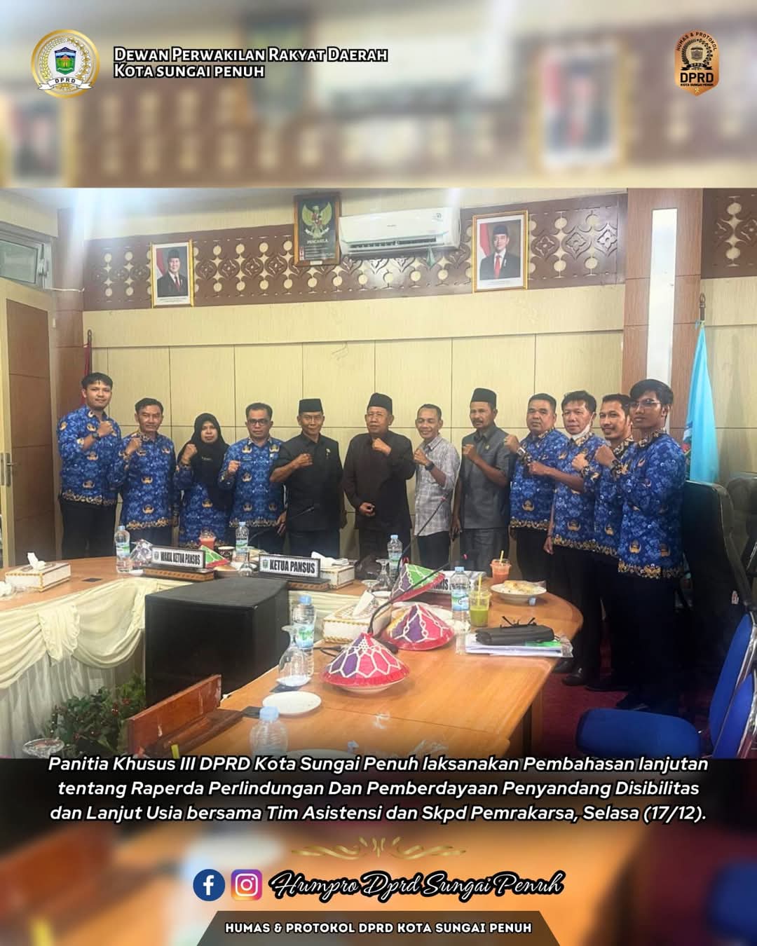 VisualJambi, SUNGAI PENUH – Panitia Khusus III DPRD Kota Sungai Penuh laksanakan Pembahasan lanjutan tentang Raperda Perlindungan Dan Pemberdayaan Penyandang Disibilitas dan Lanjut Usia bersama Tim Asistensi dan Skpd Pemrakarsa, Selasa (17/12).