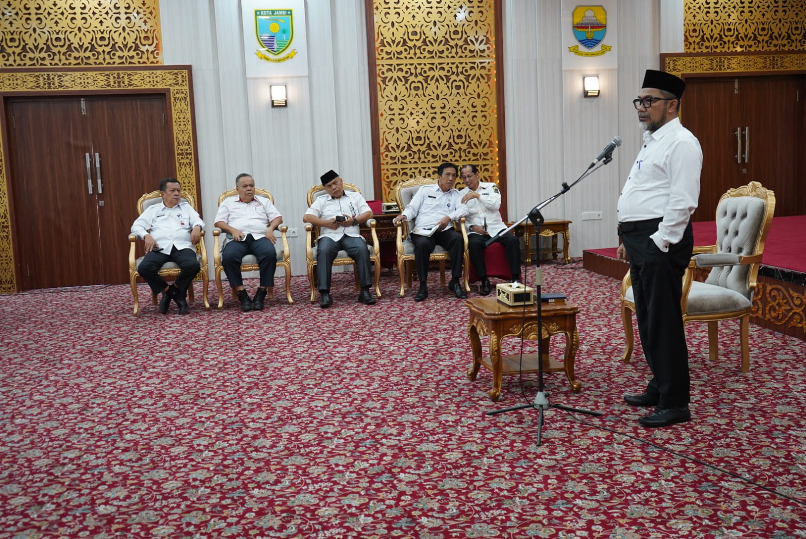 Visualjambi, Jambi. – Pjs. Gubernur Jambi, Dr. H. Sudirman, SH, MH memimpin rapat perdana dengan para Kepala OPD dilingkup Pemerintah Provinsi Jambi, bertempat di Ruang Pola Kantor Gubernur Jambi, Rabu (25/09/2024) pagi.