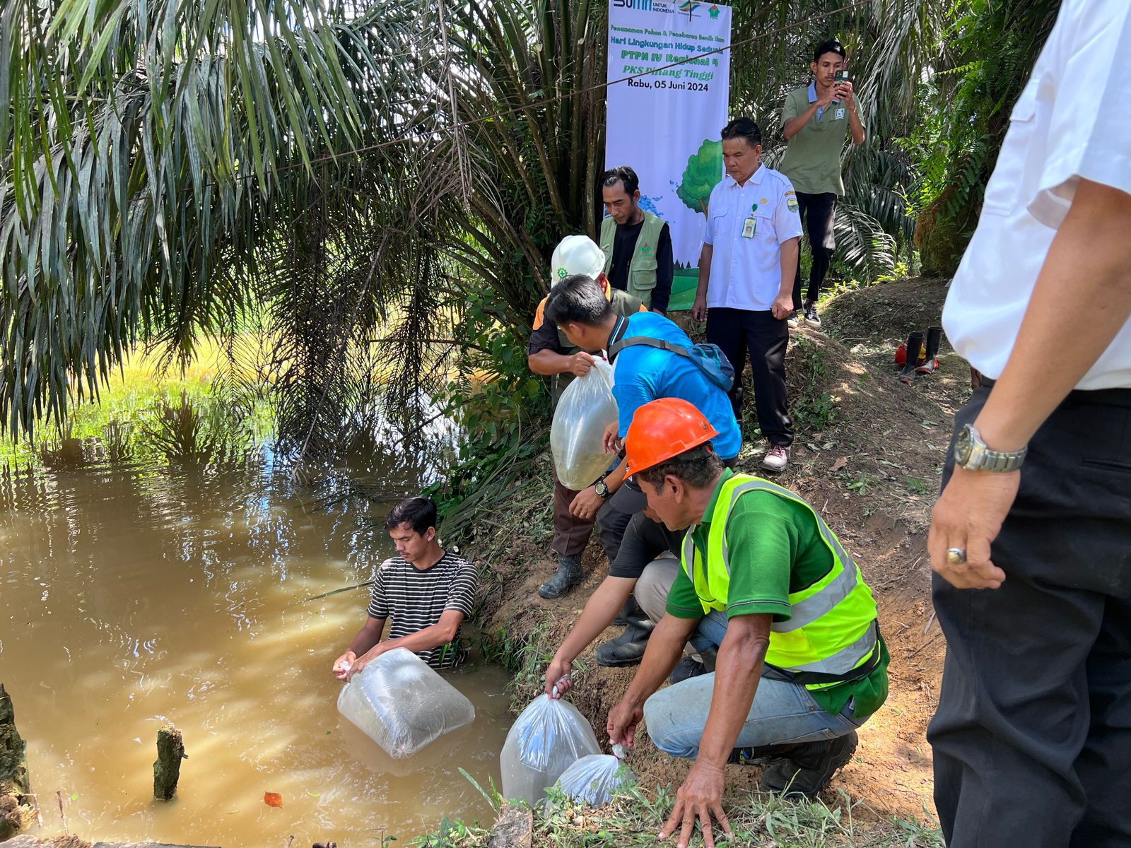 VisuaLJambi, Jambi – Hari Lingkungan Hidup Sedunia, 5 Juni 2024, menjadi momentum bagi PT Perkebunan Nusantara (PTPN) IV Regional Jambi untuk melestarikan lingkungan dan menjaga ekosistem yang berkesinambungan. Selain menanam bibit buah-buahan, perusahaan BUMN ini juga menyebar benih ikan Jelawat sebanyak 8.000 ekor di kolam Pabrik Kelapa Sawit (PKS).