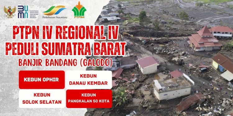VisuaLJambi. – Empat Manager Kebun PT Perkebunan Nusantara (PTPN) IV Regional 4 Jambi yang berlokasi di Sumatera Barat (Sumbar) cukup sigap dan tanggap begitu terjadi banjir bandang lahar atau galodo dan tanah longsor di Sumatera Barat (Sumbar), Pada Jumat 10 Mei 2024 yang menelan korban jiwa 61 orang menurut data BNPB Sumbar dari sedikitnya 7 kabupaten dan kota di Sumbar.