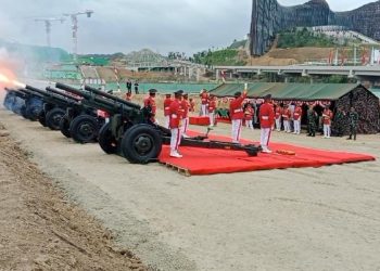 Visualjambi, IKN Nusantara. - Yonarmed 18 Buritkang melaksanakan tugas Penembakan Kehormatan detik-detik Proklamasi pertama kali di IKN Nusantara. Sabtu (17/8/2024) ...