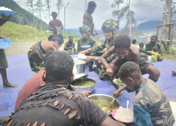 Makan Siang Yonif 323 Buaya Putih Bersama Masyarakat Pedalaman Papua