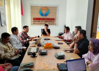 VisualJambi, Kota Jambi. - Dalam Rapat Koordinasi (Rakor) pada 26 april 2024, Kepala Ombudsman Jambi, Saiful Roswandi bersama Kepala Satuan ...