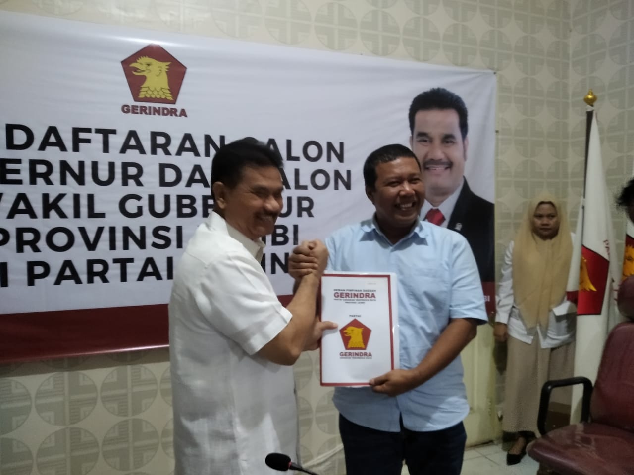 Seperti di DPW Partai Gerindra Jambi, Romi Hariyanto bersama tim pemenangan datang pengembalian formulir pendaftaran calon Gubernur Jambi dan Ketua hingga wakil serta jajaran Partai Gerindra yang hadir menerima surat dari Romi Hariyanto dan menununggu final penentuan dukungan di Pilgub Jambi.