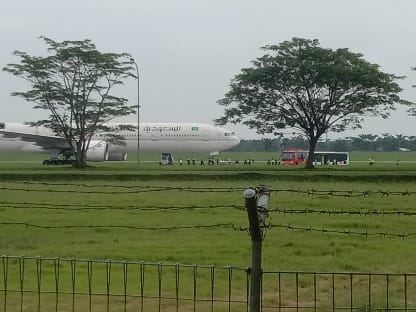 Sebanyak 442 orang penumpang dan 18 awak pesawat telah berhasil dievakuasi dengan aman ke lokasi isolasi sementara di Gedung G1 bandara. Saat ini sterilisasi menyeluruh terhadap penumpang, barang bawaan, dan pesawat terbang terus dilaksanakan.