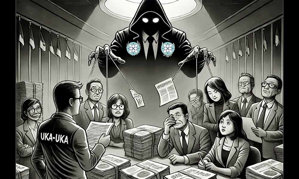 Mengapa pejabat dan aparat, ibarat kura-kura dalam perahu, pura-pura bego, dalam masalah uka-uka ini? Mengapa mereka yang digaji dari uang rakyat itu secara gegabah menghambakan diri kepada lembaga swasta berlogo bunga kuburan (bunga kemboja) dengan mengikuti perintah dewan pecundang pers bersama konstituennya tersebut? Hampir dipastikan, bahwa di sana ada kolaborasi-mutualistik kolusi-koruptif untuk menggarong uang rakyat tanpa diketahui publik akibat kran informasi ditutup rapat terhadap media-media independent yang tidak terafilisasi dengan dewan pers.