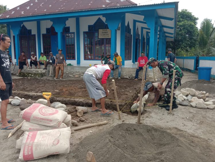 Serka Ruswandi anggota Babinsa Koramil 408-05/Mana Kodim 0408/BS menerangkan, dalam kegiatan tersebut aparat Babinsa bersama warga masyarakat setempat saling bahu membahu dalam membangun pondasi awal perehaban Masjid An Nur yang menjadi kebanggaan warga Desa Bumi Agung.